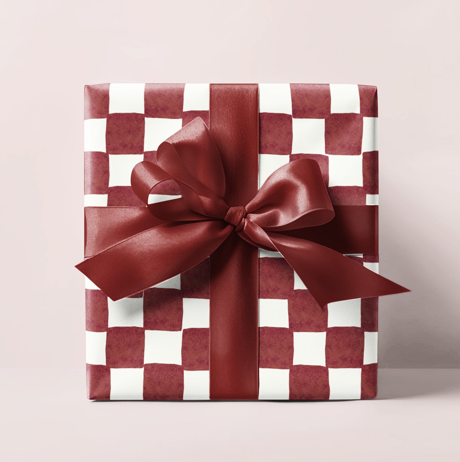 Crimson Watercolor Checkered Wrapping Paper Roll